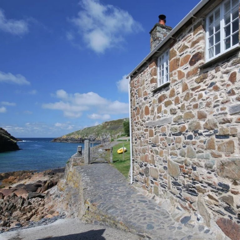 This stone-built former pilchard cellar offers a romantic hideaway by the sea. Nestled in the rugged Cornish coastline, Carolina Cellar provides stunning views of the beach and inlet. The interior balances its rustic charm with modern comforts, featuring a cosy living area and a well-equipped kitchen. Perfect for Christmas, its tranquil location invites you to unwind while enjoying the sounds of crashing waves and crisp sea air. A National Trust property, it connects you with nature and history in equal measure. Read more.